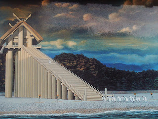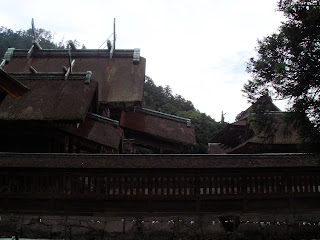 The current Izumo Taisha, the one I visited, has been in exsistence since 1744. About 500 years before that, it looked different, but had the same basic shape as the "modern" temple. Before 1248 though, the temple stood 48 meters into the air, connected to the ground by an enormous flight of stairs, giant logs tied together in clumps of threes serving as pillars, and surely providing breakthtaking views over the forest sunrises and seaside sunsets.